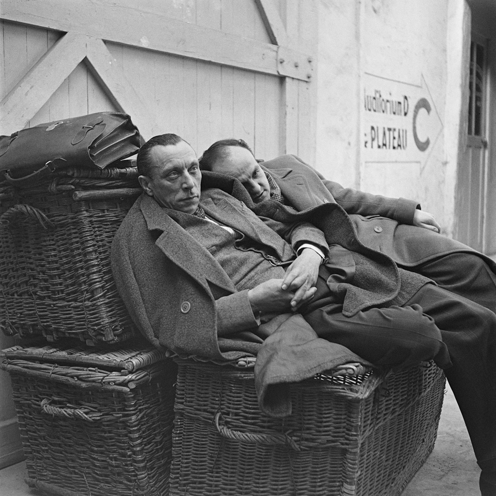 Pas très confortable et en plus il a l'air de ne pas faire très chaud ! Louis Jouvet et Bernard Blier entre deux prises sur  le tournage de Quai des orfèvres (1947) de Henri-Georges Clouzot. Photographie © Ministère de la Culture - Médiathèque du Patrimoine, Dist. RMN-Grand Palais / Sam Lévin